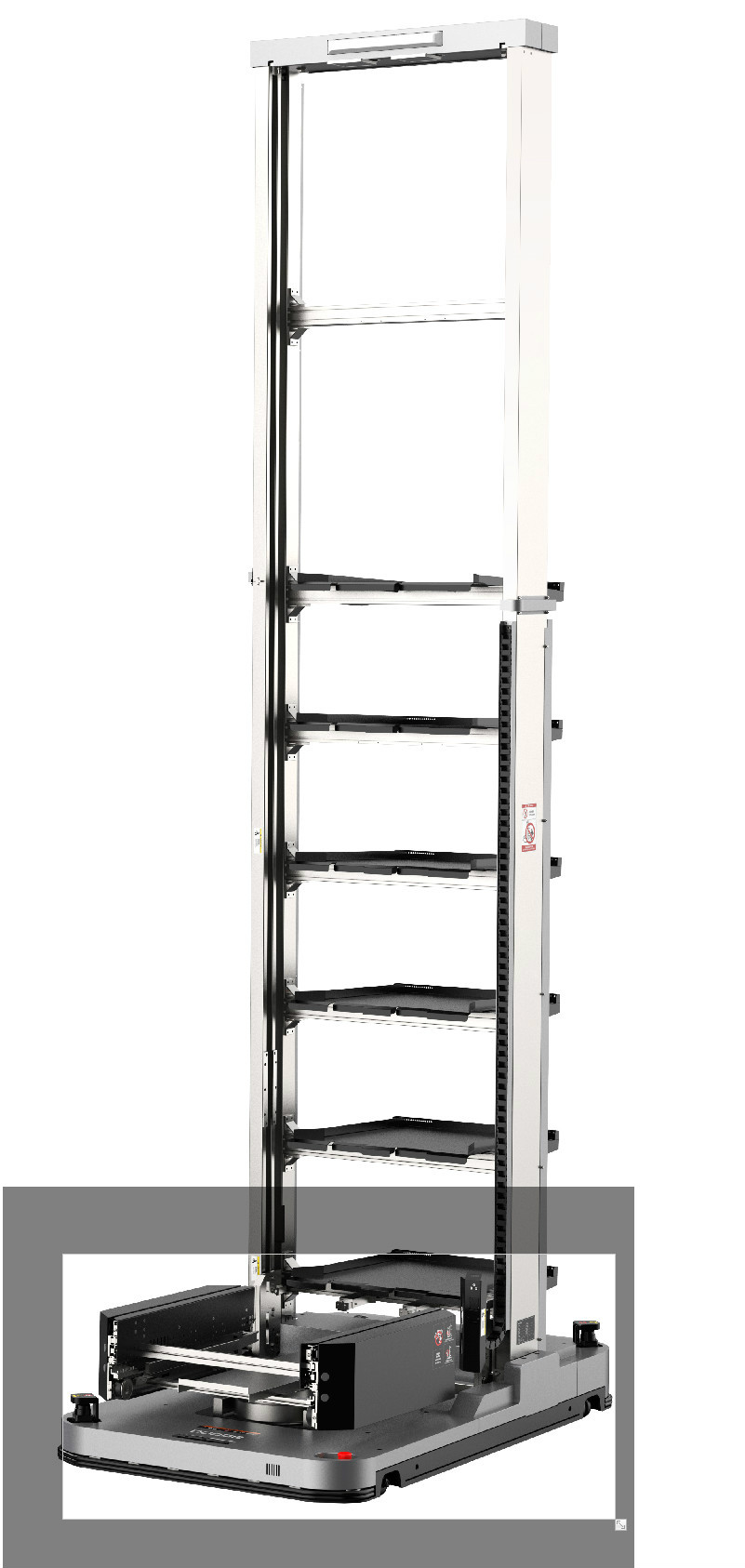 車身低矮,可以進(jìn)入低矮的料架地下牽引。潛伏牽引并且雙向運行可以使轉(zhuǎn)彎半徑縮小,占地面積小。 驅(qū)動單元一鍵電動升降方便維護。最多可以指定1024個站點。 激光傳感器安全防護到位